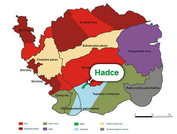 Karlovarský kraj je geologicky velmi petsré území. Kromě hlavních, plošně zastoupených hornin jako jsou žuly, čediče, krystalické břidlice či třetihorní sedimenty je zde také významný výchoz hadců (v mapě označený zeleně). Hadce, také zvané serpentinity, jsou přeměněné horniny bohaté na minerál hořčík. Na hadce v centru Slavkovského lesa jsou vázány vývěry některých minerálních vod, které jsou právě na tento prvek bohaté. Ostatně hořčík, magnesium, dal jméno i zdejší nejznámější minerální vodě.