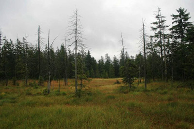 V Krušných horách ale nenajdeme jen lesy - významnou součástí krušnohorské přírody jsou horská rašeliniště, tzv. vrchoviště. Vznikají obvykle tak, že se na podloží neprostupném pro vodu vytvoří díky srážkám, které jsou na horách hojnější než jinde, jezírko. To pak postupně začne zarůstat rašeliníkem, až rašeliník pokryje celou plochu vodní hladiny. Rašeliníky jsou bezcévné rostliny příbuzné mechům, kterým se daří v prostředí chudém na živiny a zároveň okolní prostředí silně okyselují a tak si udržují vhodné podmínky pro růst. Ve vodě přirůstají směrem k hladině a směrem ke dnu postupně odumírají a vytvářejí tak vrstvu rašeliny. Když je vrstva rašeliny dostatečně silná, začne se rašeliniště postupně vysušovat a kromě rašeliníku se na něm uchytí i další druhy rostlin, například vlhkomilné traviny (suchopýr, ostřice) či různé druhy brusnicovitých rostlin (borůvka, brusinka, klikva). Častý je zde také výskyt masožravých rostlin, zejména různých druhů rosnatek.